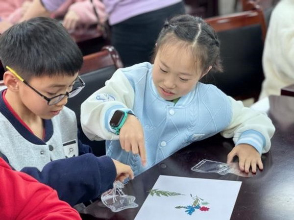 在服务现场,党员们手把手教孩子们制作干花书签和古诗摆件。孩子们在党员们的耐心指导下,认真听讲、动手实践,不一会儿,一个个精美的书签和摆件就呈现在大家面前。在制作书签的过程中,孩子们积极分享了自己对于书签在阅读中的用法,表达了对阅读的热爱和对知识的渴望。在制作古诗摆件活动前,孩子们流利背诵了他们学过的古诗,展示了他们的文化素养和语言表达能力。这堂生动有趣、寓教于乐的手工课,丰富了社区儿童的周末生活,传播了中国传统文化之美,彰显了支部党员投身社区公益教育事业的使命感。