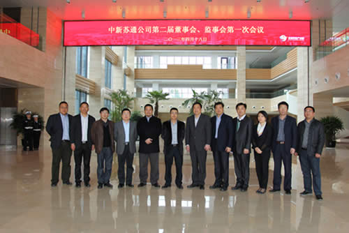 2013年4月18日下午,中新苏通公司在苏通科技产业园江成研发中心一楼会议室召开第二届董事会、监事会第一次会议。中新集团总裁、中新苏通公司董事长赵志松主持会议,公司董事、监事参加了会议。
